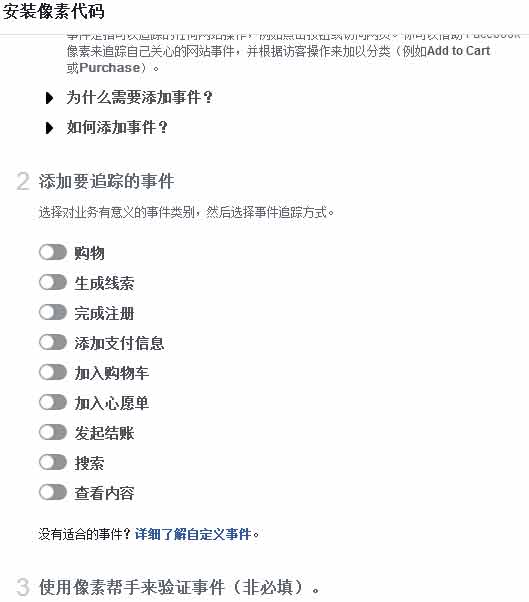 5. “發起結賬”事件:追蹤用戶進入結賬流程的行為(例如:點擊、“結賬”按鈕的落地頁面),標準事件代碼為fbq('track', 'InitiateCheckout');