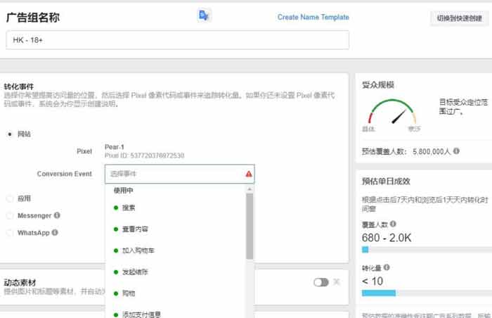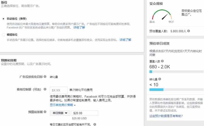 由于興趣,行為和人口統計的受眾通常很廣泛,如果設置完之后都是千萬的潛在受眾,建議最好把潛在受眾控制在百萬量級。