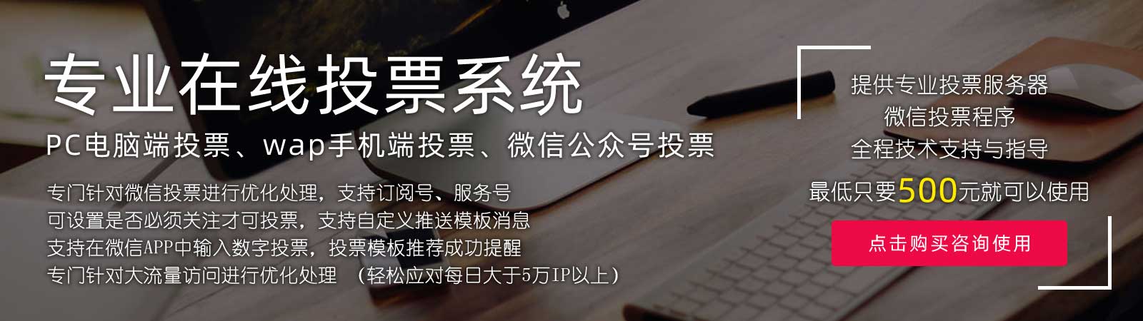 我們?yōu)槟峁┰诰€投票系統(tǒng)、微信投票、在線評選程序定制等服務